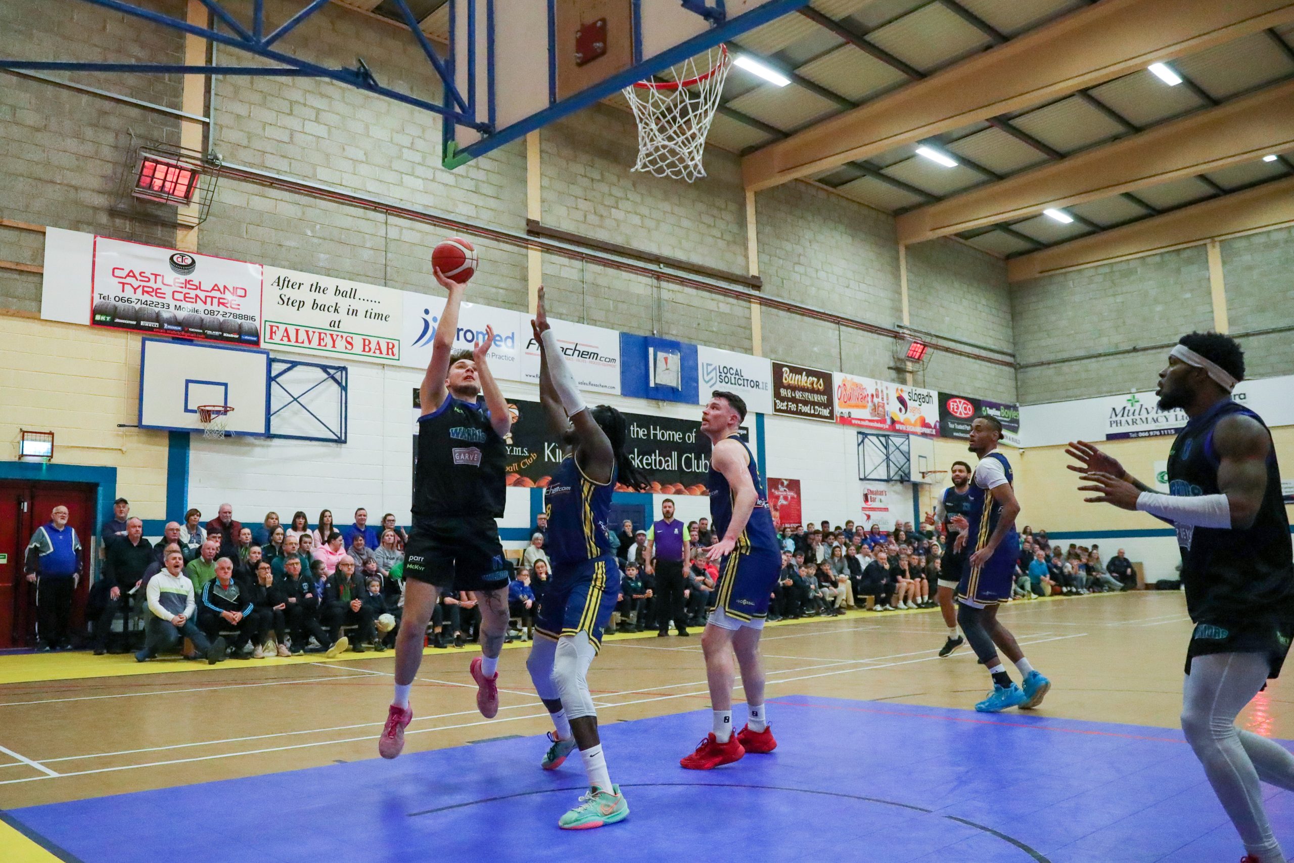 The Warriors were on the board early through Rap Buivydas and Mark Stephens but a statement hat trick of threes from Jordan Blount saw Killorglin edge ahead. Stephens and Ryan Leonard helped the Warriors to level but three quality scores from Beni Fungula had Killorglin 21-15 up. Daniel Jokubaitis struck for his first three of the night but a late Jeffrey Okeke major gave the hosts a 24-20 quarter time lead.