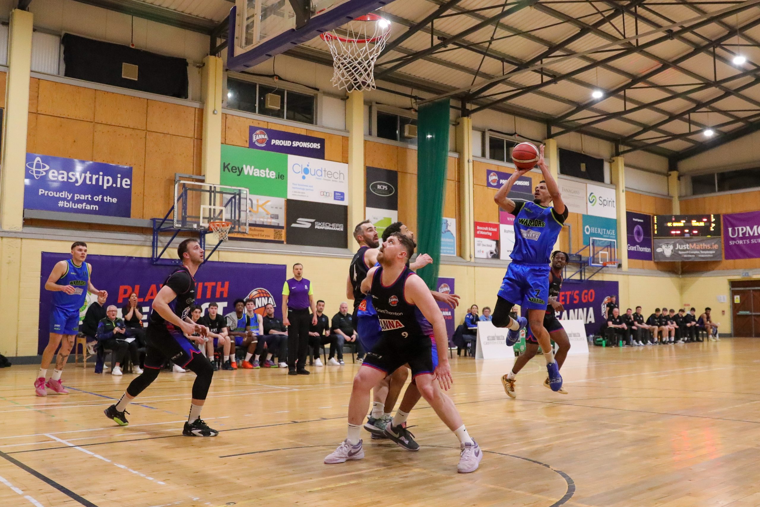 The Warriors started with real intent with Daniel Jokubaitis knocking down the opening score from distance and Ryan Leonard and Mark Stephens quickly following up from inside. Éanna replied with interest through Kristijan Andabaka with two majors and another from Tyland Crawford to help the hosts to a 15-9 lead. Josh Osayanrhion was sprung from the Warriors bench and duly landed a double from beyond the arc but Andabaka, Josh Wilson and Neil Lynch all hit from outside to help Éanna to a build 28-21 lead at quarter time.