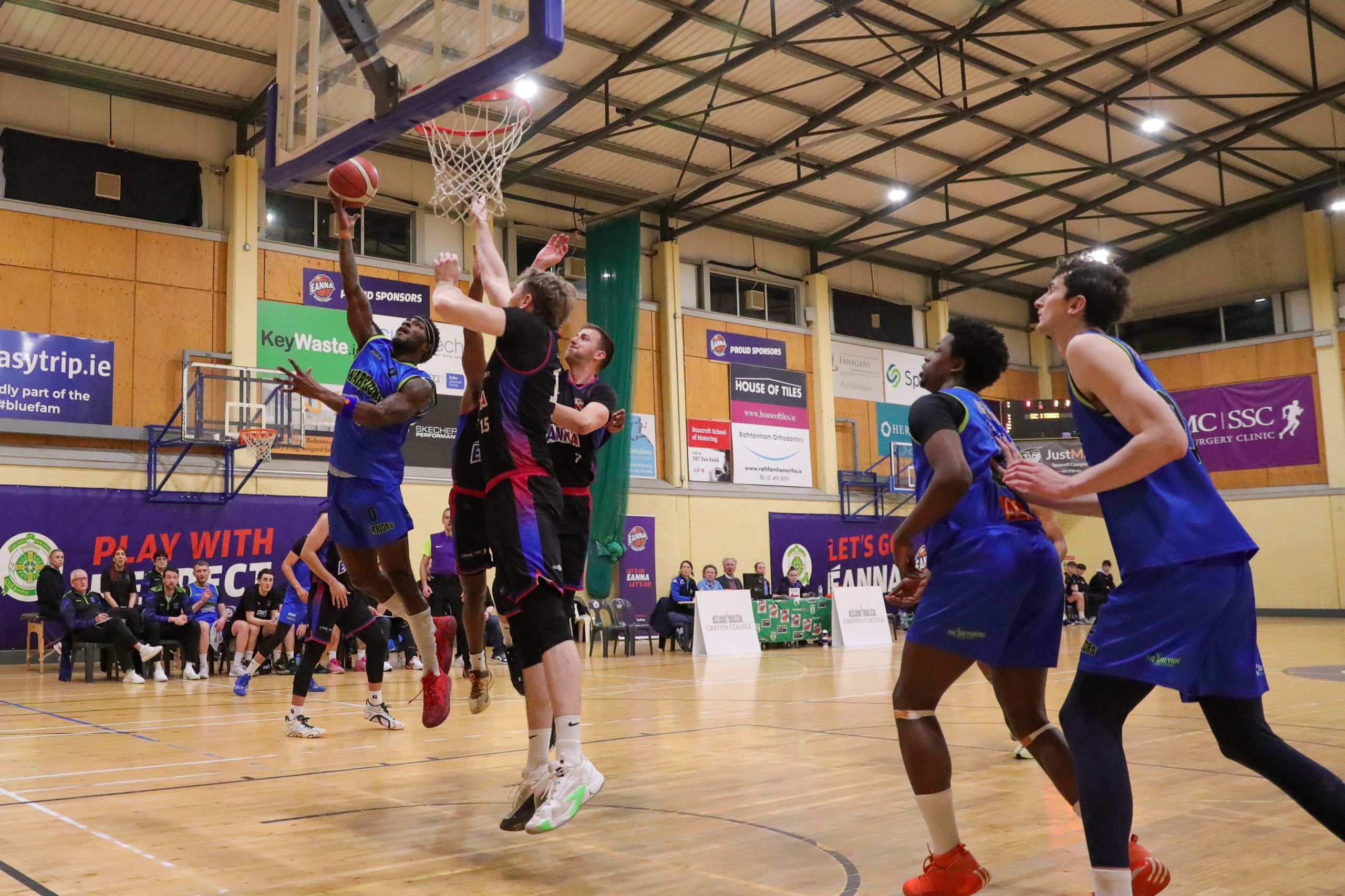 Vincent’s got into a rhythm early in the second with scores from Daniel Heaney, Giorgo Tvalabashvili and Jordan Nsimba. The Warriors responded through Steven Bowler, Buivydas and a major from Adon but the visitors opened up a 7 point lead when Coombes struck again from beyond the arc and Gaiter and Dorian Lagoeyte followed suit. The game was then overshadowed by a serious shoulder injury sustained by Warriors Cian Sullivan just before halftime while blocking a certain St. Vincent’s score. At the other end scores late on from Josh Osayanrhion and Adon moved the Warriors closer but they still trailed 46-43 at half time.